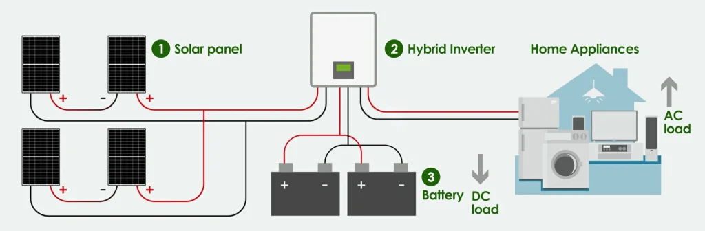 Solar power systems consist of solar panels, solar batteries and hybrid inverters to generate electricity from the sun.