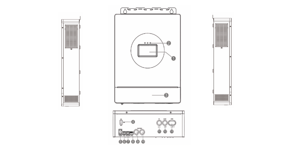 | 10. Battery Interface (Negative) | 11. Photovoltaic Interface | 12. AC output (L+N) |