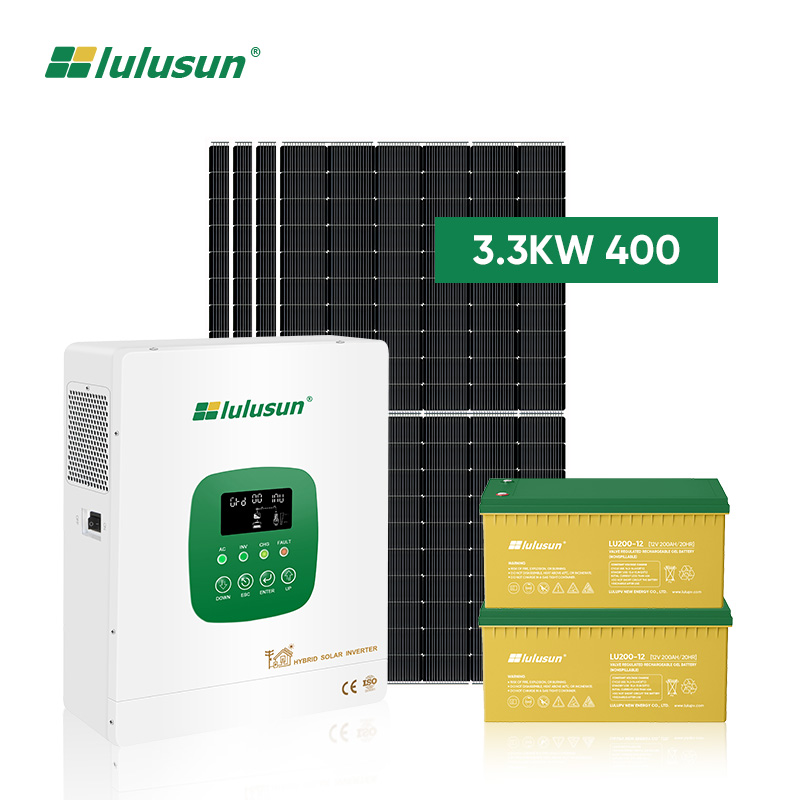 The LU3.3KW-400 solar system is a compact and efficient residential solar power solution, designed for households seeking reliable off-grid or hybrid energy independence. The system integrates a 3.3kW hybrid inverter, 2*Gel Battery 12V200AH GEL battery, and high-efficiency solar panels.